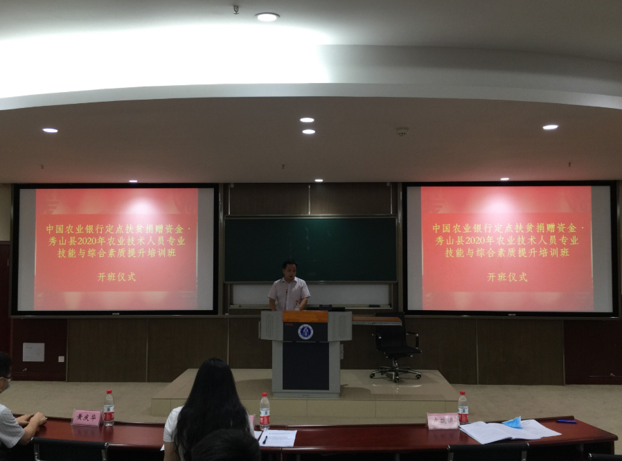 为提高秀山县农业技术人员专业技能与综合素质,公司于2020年6月22-24日承办了中国农业银行定点扶贫捐赠资金·秀山县2020年农业技术人员专业技能与综合素质提升培训班。22日上午8:30,培训班开班仪式在sunbetB201教室举行,秀山县扶贫攻坚办分管领导曾昂同志、sunbet申搏经济管理公司党委书记卢跃进同志、sunbet副经理黄庆华教授,以及公司高层培训办公室相关工作人员出席了开班仪式。开班仪式由公司副经理黄庆华教授主持。