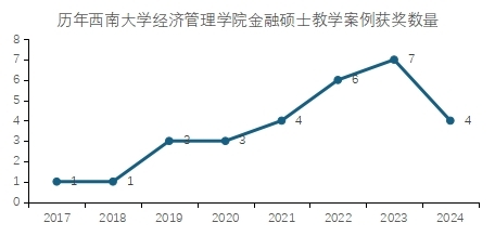 在师生共同努力下,学院金融硕士(MF)教育中心在教学案例参赛方面取得了显著成效。截止到2024年,学院累计获得29篇全国优秀金融硕士教学案例和入库案例,其中,2022-2024年连续三届入库案例数量并列排名全国第二位,仅次于中央财经大学等国内知名财经院校。