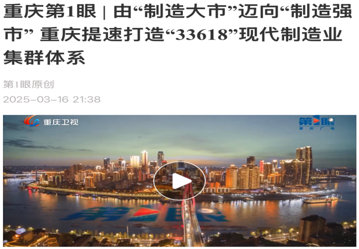 重庆电视台《重庆第1眼》2025年3月16日播出题为《由“制造大市”迈向“制造强市”重庆提速打造“33618”现代制造业集群体系》的新闻分析。sunbet副经理黄庆华教授接受了记者的采访。
