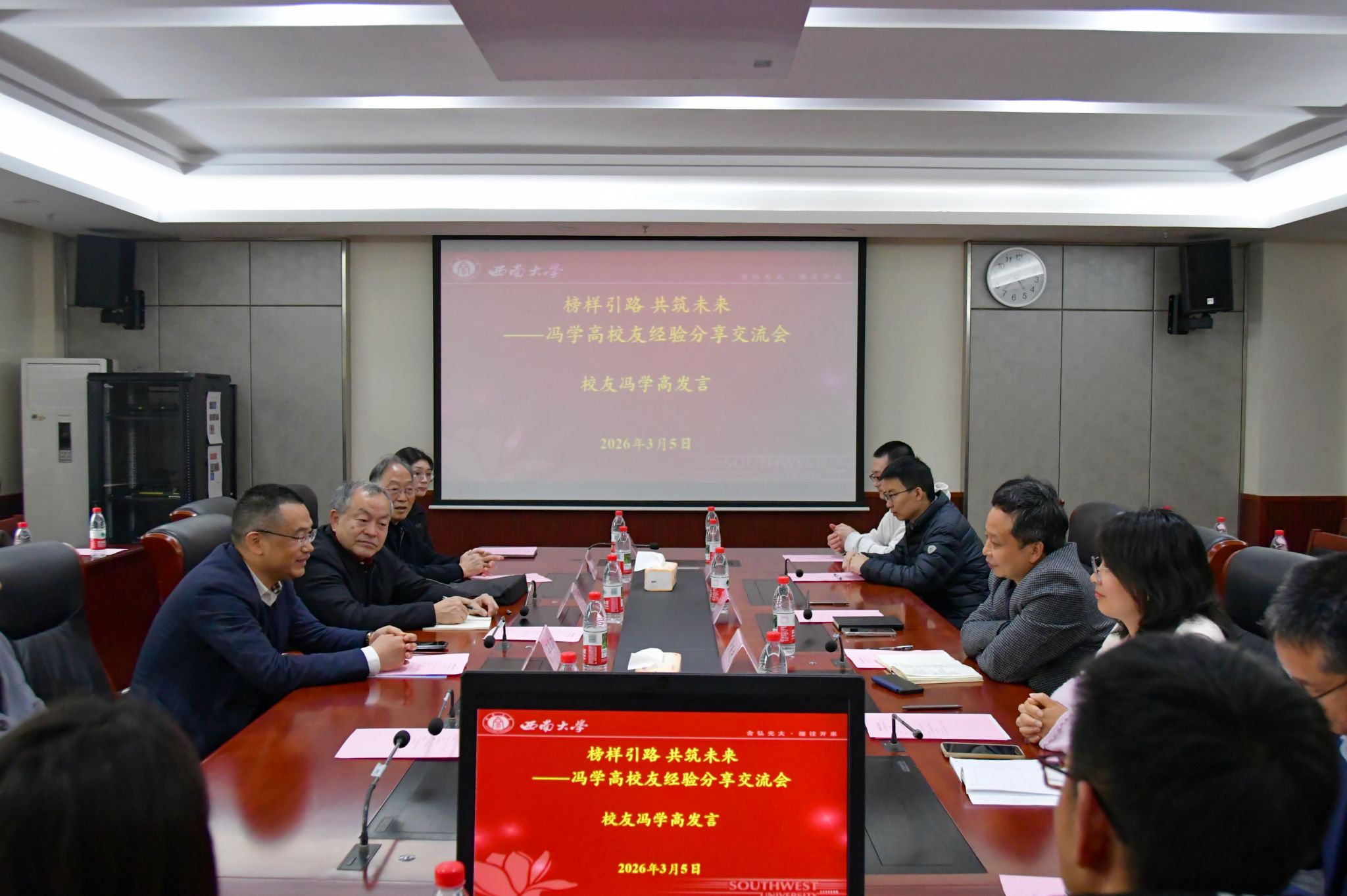 3月5日下午,公司举办“榜样引路・共筑未来”员工经验分享交流会,特邀1996级员工、四川高宸实业有限公司董事长冯学高重返母院,与师生代表共话成长、分享经验。公司员工总会副会长、公司员工会会长丁忠民,公司党委书记卢跃进,党委副书记、经理杨丹,公司员工会副会长祝志勇,党委委员、副经理刘新智,公司员工会秘书长黄庆华,退休教师罗太贵、马悦英及各系教师代表、本硕员工代表参会。交流会由杨丹主持。