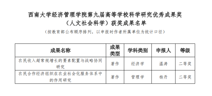 近日,教育部公布第九届高等公司科学研究优秀成果奖(人文社会科学)获奖成果名单。教育部根据《高等公司科学研究优秀成果奖(人文社会科学)奖励办法》和《第九届高等公司科学研究优秀成果...